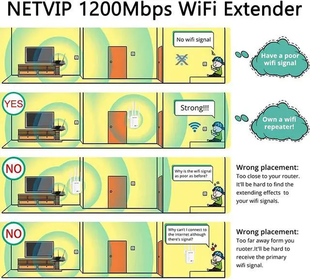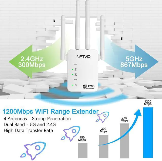 NETVIP 1200Mbps WiFi Range Extender Let You Enjoy Network without Limitation Anytime and Anywhere !