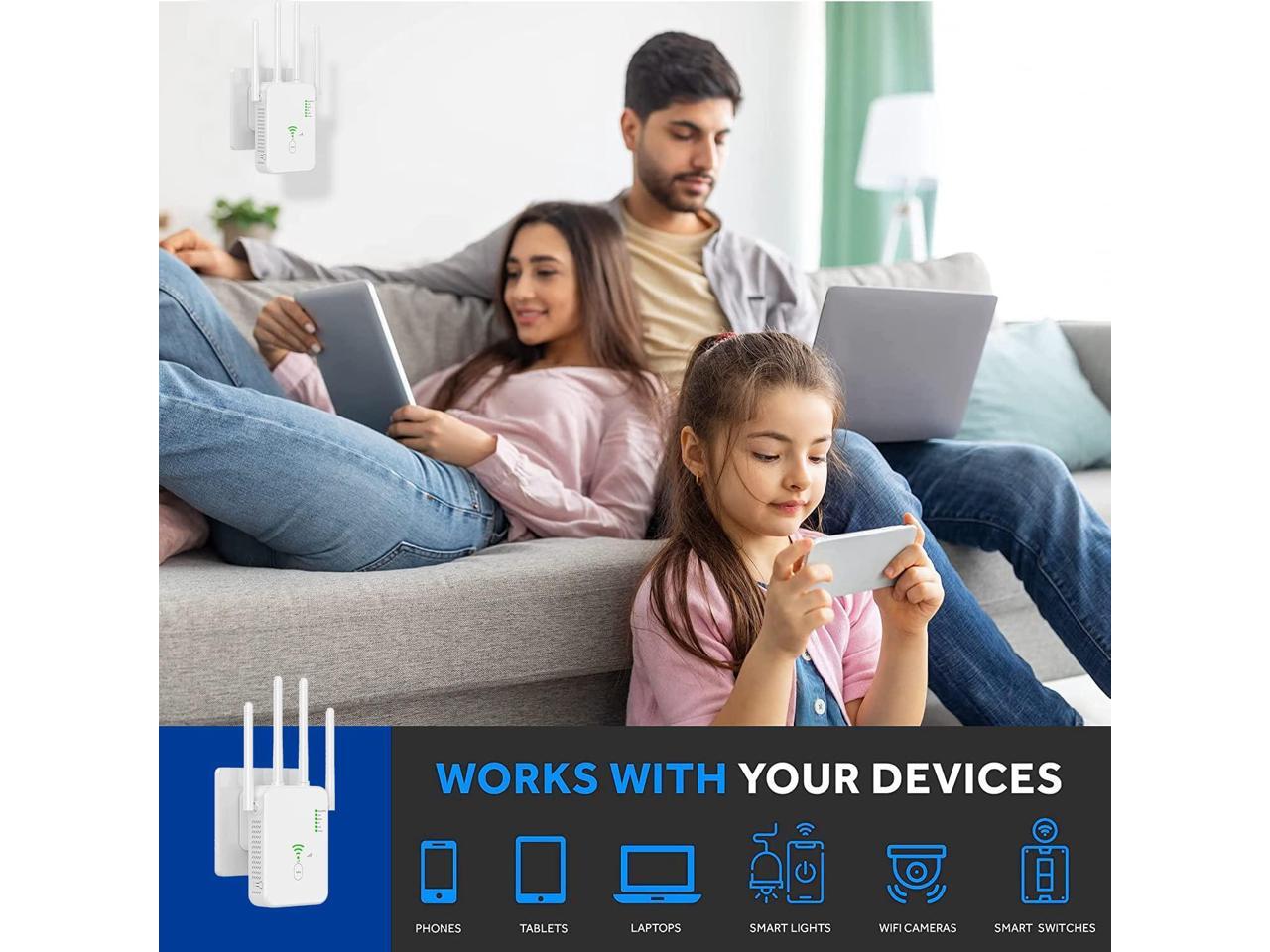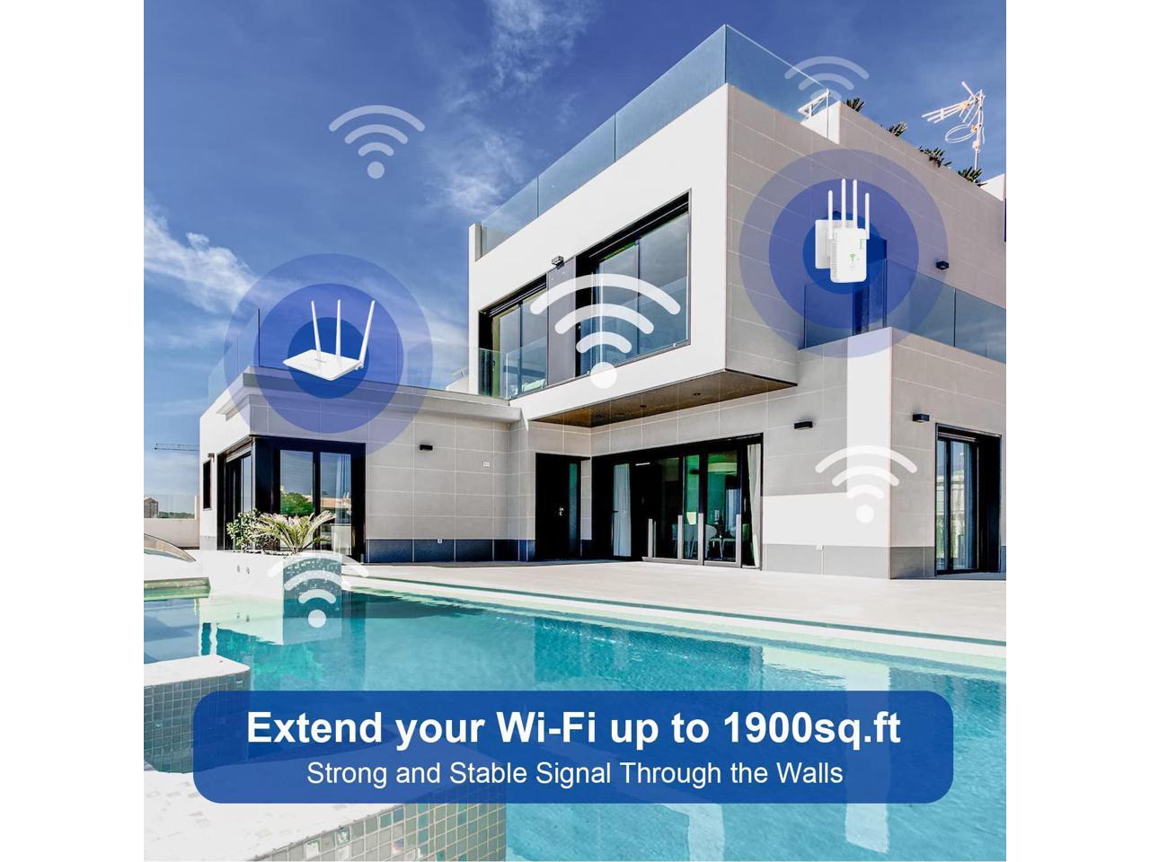 - [Extend WiFi Coverage Up to 1900 Sq.ft] equipped with 4 high gain antennas, full coverage of 360° and has strong ability to penetrate walls. extend Wi-Fi Coverage up to 1900 Square feet.