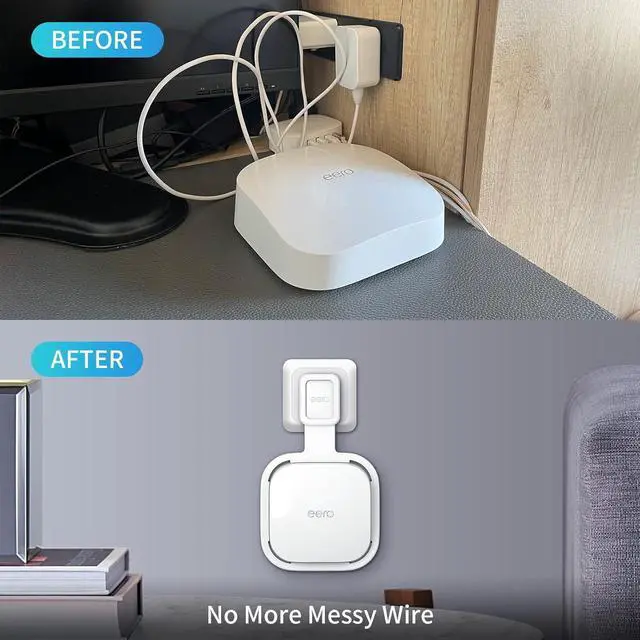 Elegant Solution For The Wire - No more messy wire. Perfect for Cord Management. The wall bracket for eero 6e pro mesh wifi system hide the cord completely inside the wall bracket. It get the eero units off your furniture and counters. No More taking up space on counters or tables.
