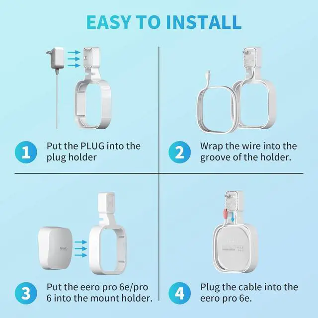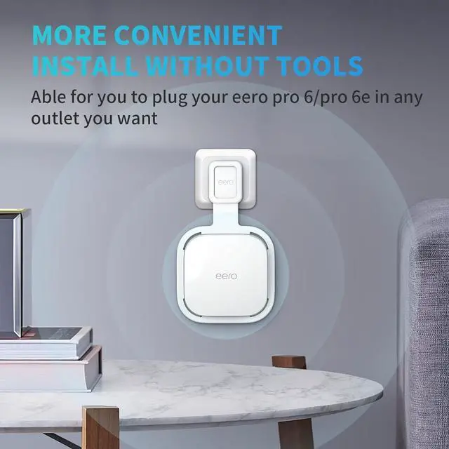 Easy To Set Up, Install Without Screws - No tools needed and simple. You can plug the bracket for eero pro 6e/pro 6 in wherever outlet to match your need. You can easily figure out how to install wall mount holder stand bracket without looking at the installation instructions. Easy to hide the wire into the groove.