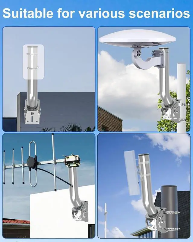 Waterproof and Dustproof: Constructed with durable Stainless Steel 403 material, this wireless bridge bracket mount is perfect for long-term outdoor antenna installations. It is resistant to bending, breaking, snapping, or cracking under normal usage, ensuring reliability in various weather conditions such as strong winds and rain. Properly installed, it provides excellent protection against the elements.