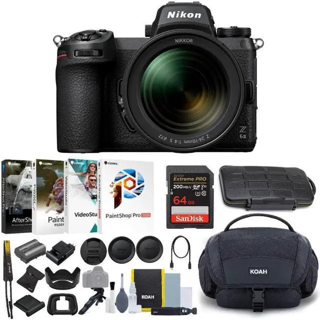 Join the next generation of Z mirrorless and get ready to capture stunning images and video with the 24.5 MP Z 6II and NIKKOR Z 24-70mm f/4 S zoom lens. The lens features a constant f/4 maximum aperture and is designed to be shot wide-open with smooth, quiet focusing. This versatile lens is ideal for capturing wide views, close-ups and everything in between. The camera features 4K Ultra HD video at 60p, a 273-point Hybrid AF system with more options, outstanding low-light capabilities, dual processors, dual card slots, and wireless connectivity with smartphones and laptops.