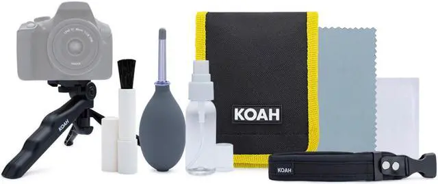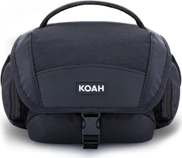 Koah Nostrand Avenue Camera System Gadget Bag with Accessory and Cleaning KitThe Nostrand Avenue Camera System Gadget Bag from Koah is a semi-soft carrying case that fits one DSLR camera and up to two lenses and accessories. Designed with keeping easy access in mind, it features a large top cover that protects your camera/camcorder and gear from rain and sand. It also allows for quick access to your camera and is secured with a snap coupler. An extended zipper pulls add to the bag's convenient design.