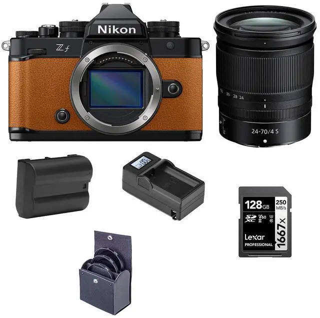 Because the Nikon Z f Mirrorless Camera in Orange, paired with the NIKKOR Z 24-70mm f/4 S Lens, is a masterpiece of modern photography, it combines timeless elegance with cutting-edge technology. This bundle includes a battery, a 128GB memory card, and a 72mm filter kit, ensuring you're ready to capture stunning images right out of the box. The Nikon Z f is designed for photographers who appreciate both style and substance. Its premium embossed leather exterior and sleek orange finish exude sophistication, while the magnesium body provides durability and a comfortable grip.