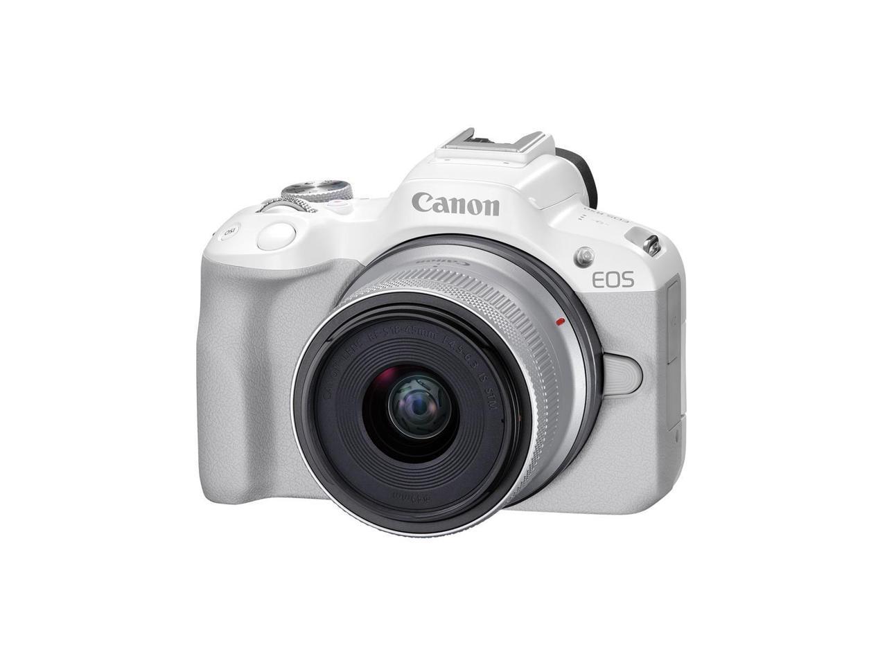 Canon EOS R50 Mirrorless Camera with RF-S 18-45mm f/4.5-6.3 IS STM Lens, White