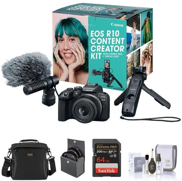 Also provided in this kit is the lightweight Canon Tripod Grip HG-100BTR so you can stabilize the EOS R10 camera on a table, counter or other surface to help you get clear and steady pics or video, and a detachable Bluetooth enabled remote to operate the camera from a distance or enable you to be part of the scene. To complement the rich video quality, you can get crisp audio using the bundled Canon Stereo Microphone DM-E100 indoors, and even outdoors with the included windscreen.