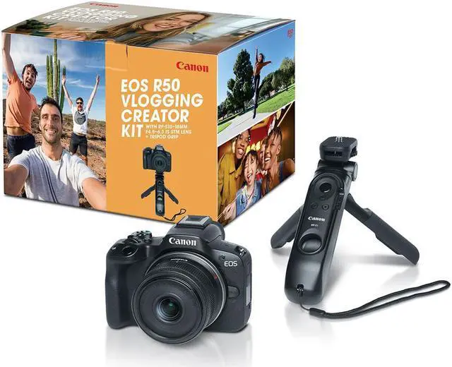 This makes it easier to take selfies, low angle shots, and group photos. With built-in Bluetooth and Wi-Fi capabilities, the EOS R50 camera makes it easy to connect to your smartphone, allowing you to easily upload and share your creations. The camera also supports UVC/UAC compatibility, allowing it to be used as a web camera for live streaming in Full HD 30 fps fixed. Capture the world as you see it with the Canon EOS R50 Mirrorless Camera and RF-S 10-18mm f/ 4.5 - 6.3 Lens Video Creator Kit.
