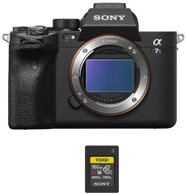 internal 10-bit 4:2: 2 sampling for unparalleled visual clarity. The advanced color control, featuring S-Cinetone, ensures vivid colors and lifelike skin tones. Customize your content effortlessly with extensive color and gamma options for flexible post-production. Navigate challenging conditions effortlessly with the Fast Hybrid AF system, covering 92% of the image area with 759 phase-detection points and 425 contrast-detection areas. The 5-axis SteadyShot INSIDE image stabilization system counters various types of camera shake during both stills and video shooting, providing stability with any lens. Crafted for durability, the camera's body design includes a Tru-Finder EVF with high resolution, a vari-angle touchscreen LCD, and a robust magnesium alloy chassis with extensive weather-sealing. Stay connected with dual memory card slots, a full-size HDMI port, USB Type-C for faster tethering, and built-in Wi-Fi for remote control and instant sharing. Enhance your Sony Alpha a7S III experience further with our recommended accessories. Elevate your data performance with the Sony TOUGH 160GB CFexpress Type A Memory Card, specifically designed for 4K 120p video recording, offering durability and reliability to complement the capabilities of the a7S III. Elevate your creative possibilities and capture every moment with confidence.