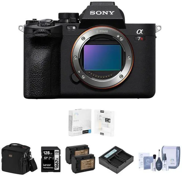 10-bit 4:2: 2 sampling, and various recording options. The camera's ergonomic design incorporates a 9.44 m-dot EVF, a 4-axis multi-angle LCD, dual memory card slots, and robust weather-sealing. Stay connected with versatile connectivity options. The Sony Alpha a7R V transcends being just a camera; it's a versatile and powerful tool meticulously crafted for creative professionals. Elevate your Sony Alpha a7R V Mirrorless Camera experience with carefully selected accessories, including a professional-grade Lexar SILVER Series 128GB UHS-II SDXC Memory Card, the stylish Slinger Alpine 160 Multi-Device Shoulder Bag, the protective ProOPTIC Glass Screen Protector for the camera's LCD, the comprehensive ProOPTIC Complete Optics Care and Cleaning Kit, and the eco-friendly Green Extreme NP-FZ100 Battery Pack with USB-C charging and a Dual Smart Charger. Embark on a journey of unmatched creativity and performance with the Sony Alpha a7R V Mirrorless Camera Bundle f a fusion of innovation and excellence.