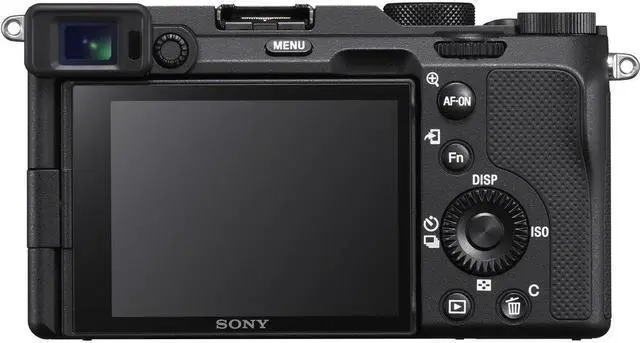 Compared to other a7-series camera bodies, the a7C has a distinctly sleeker profile that mimics the styling of a rangefinder, with an offset viewfinder and a streamlined top plate. The re-positioned electronic viewfinder is a 0.39" -type OLED with 2.36 m-dot resolution and is complemented by a 3.0" side-opening vari-angle touchscreen LCD. Built-in Wi-Fi and Bluetooth also enable wireless connectivity for remote camera control and sharing files to a connected mobile device.