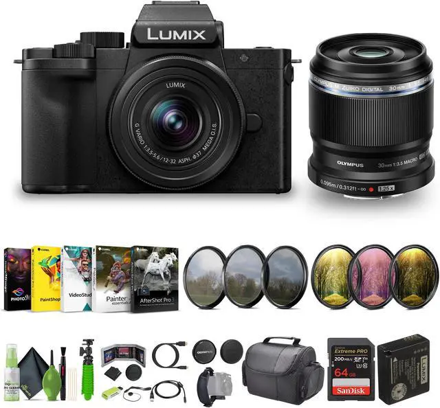 The Panasonic LUMIX G100D is a highly versatile mirrorless camera tailored for Vloggers, content creators, packing a robust set of features into a compact and lightweight frame. It boasts a 20.3MP Digital Micro Four Thirds sensor, capable of capturing high-resolution photos and supporting QFHD 4K video recording at 30fps and Full HD at 60fps. The camera comes with a 12-32mm f/3.5-5.6 Lens and features a free-angle touch rear monitor for easy framing, alongside 5-axis hybrid image stabilization for smooth, shake-free footage. Audio recording is enhanced by advanced OZO audio technology Features three built-in microphones with facial recognition technology to adjust the recording range and direction, ensuring clear audio in various scenarios. It includes intuitive content creation tools such as a recording indicator, frame markers for different social media aspect ratios, and V-Log L recording for greater creative control. The G100D integrates seamlessly with smartphones via Bluetooth for quick file sharing and doubles as a high-quality webcam for livestreaming or video calls all of which make it an ideal choice for beginners and experts alike looking to produce professional-grade content effortlessly. its combination of 4K video capabilities, advanced audio technology, portability, Lumix G100 Mirrorless Camera is an ideal Professional Vlogging, Photography, Video Camera for Vlog, Youtube Content Creator, Podcast, and anyone creating content for social media platforms.