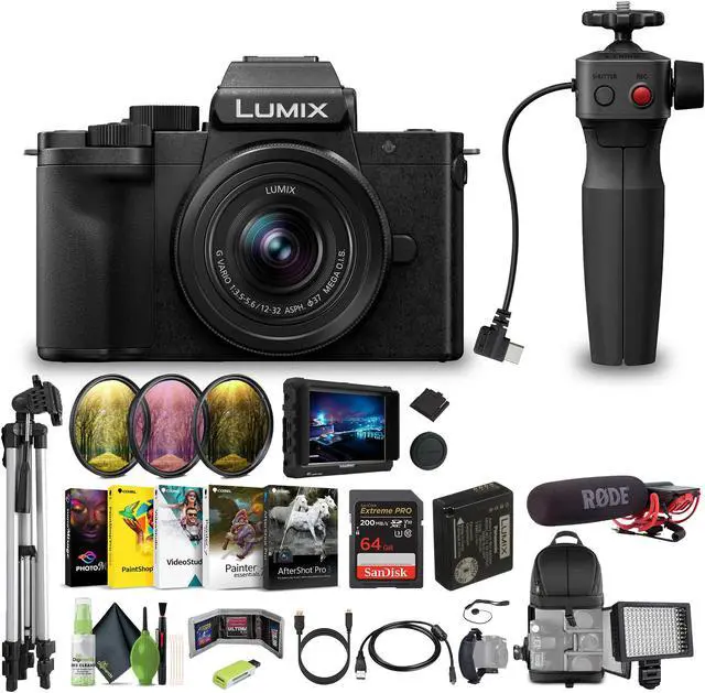 Panasonic Lumix G100D Mirrorless Camera with 12-32mm Lens and DMW-SHGR2 Tripod Grip