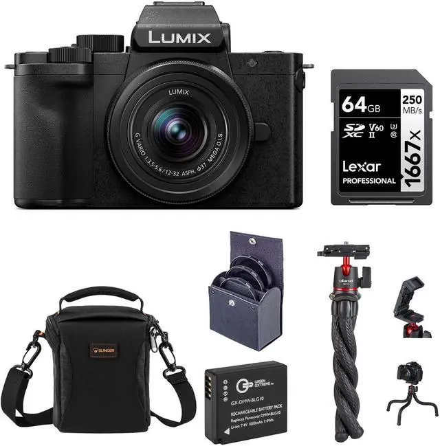 The LUMIX G100D also doubles as a high-quality webcam, elevating your livestreams and video calls to crystal-clear 4K quality via USB connection with LUMIX Webcam Software. The included Lumix G Vario 12-32mm f/ 3.5 - 5.6 ASPH OIS Lens is an essential everyday lens with a versatile zoom range. Starting at a 12mm wide angle (35mm camera equivalent: 24mm) and extending to 32mm (35mm camera equivalent: 64mm), this lens is perfect for capturing dynamic landscapes, indoor shots, and casual snapshots. Its compact build and sleek metallic design make it a stylish and practical addition to your LUMIX gear. Featuring MEGA Optical Image Stabilization (O. I. S. ), the lens ensures sharp, blur-free images by compensating for minor movements and vibrations. With HD video support, it performs smooth aperture changes and offers a silent design for enhanced audio capture, ensuring you don't miss a moment of the action. The lens construction includes 8 elements in 7 groups, with 3 aspherical lenses and 1 Extra-Low Dispersion lens, reducing size and weight while correcting chromatic aberration for sharp, high-contrast images. This bundle also includes a battery, a 64GB memory card, and a tripod, providing everything you need to start capturing stunning content right away. Discover the Panasonic LUMIX DC-G100D and unlock your creative potential with this all-in-one solution for photography and videography. October 2025 Firmware UpdateLUMIX Lab App Ver. 2.0 A new feature, Magic LUT allows users to experience the freedom of creating their own color.