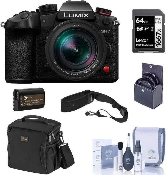 Before diving into the world of professional photography and videography, consider the Panasonic LUMIX GH7 Camera bundled with the LUMIX G Leica DG Vario-Elmarit 12-60mm f/ 2.8 -4 Lens. This comprehensive package includes a 64GB memory card, a Li-Ion battery, and a 62mm filter kit, ensuring you're equipped for any shooting scenario. The Panasonic LUMIX GH7 Mirrorless Camera is designed for those who demand exceptional video production capabilities and superior image quality. It features a 25.2MP BSI CMOS sensor that offers a wide dynamic range and enhanced gradation with a 13+ stop dynamic range boost.
