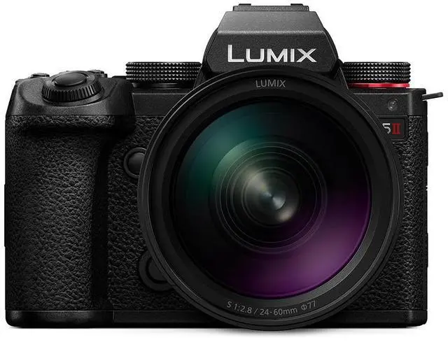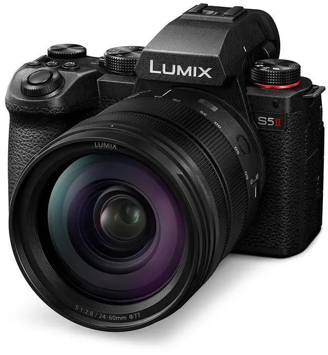 - LUMIX S5II Mirrorless Camera -Offering fast, accurate phase hybrid autofocus, the LUMIX S5II is designed for photo and video excellence. The 24.2-megapixel 35mm full-frame CMOS sensor complies with PDAF (Phase Detection Auto-Focus) with Active I.S.to support walking shots, and an imaging engine with high resolution, natural description, and approximately 2x higher-speed signal processing for high bit-rate video recording.Explore Your Creative UniverseLUMIX S5II offers unparalleled flexibility and reliability in both photo and video. Packed with features that inspire and empower dynamic storytelling, and powerful performance accessible to beginners and masters alike.Camera HighlightsPhase Hybrid AutofocusThe first LUMIX camera to adopt Phase Detection AutofocusActive I.S. TechnologyOur most advanced image stabilization system yetFlexible FramingFull sensor area recording to support all aspect ratiosHybrid Photo VideoUnlock true hybrid mirrorless capabilityAutofocus: We've Got Your Focus 779 Times Over...With 779 points of autofocus, the first Phase Detection Autofocus system from LUMIX delivers clear images with speed and accuracy to help you capture your target subject even in the most challenging scenes --including those in which multiple subjects are involved, and in backlit or low-light environments.Image Stabilization: Stability Where it CountsNew Active I.S. lets you walk and shoot with the smoothness of a gimbal. By determining the status of camera shake and optimizing horizontal, vertical and rotational correctional ratios, Active I.S. can compensate for even significant camera shake approximately 200% more than conventional systems.Full Sensor Open Gate: Flexible FramingNowadays everyone needs to prepare content for multiple aspect ratios. By utilizing the full sensor area and allowing for customizable frame markers, the S5II lets you confidently capture content with ALL final deliverables in mind.Real Time LUT: See Your vision Come to LifeChoose from our library of LUTs or add your own, then apply in camera (for both photo and video) to make sure you achieve the look you are going for as well as reduce time in post-production.Extended Zoom RangeCrop Zoom / Hybrid Zoom extends the zoom range of both photos and videos, allowing you to expand your range of expression even if you only carry around one lens.Burst Shooting to Never Miss the MomentLUMIX S5MII delivers AFC burst shooting using the electronic shutter at 30 frames per second with 24.2mp resolution. The sensor's higher readout speed also minimizes rolling shutter distortion and captures images too fast for the naked eye to process.Heat Management for Unlimited Recording TimeAn optimized heat dissipation structure enables extended recording even when shooting in high resolution. 4:2:2 10-bit C4K/4K 60p/50p unlimited recording time from 0 Degree -104 Degree F.Capture Every Detail with High Resolution ModeThe LUMIX S5MII automatically captures eight consecutive images while shifting the sensor, and the new engine's high-speed signal processing smoothly synthesies them into a 96-megapixel equivalent (12,000 x 8,000 px) image.- LUMIX S 24-60mm f/2.8 Lens -LUMIX S 24-60mm Lens offers constant F2.8 brightness in a compact, lightweight design. Spanning 24mm wide-angle to 60mm standard, it's ideal for landscapes, portraits, street scenes, and video-with smooth bokeh and excellent image quality throughout. Compatible LUMIX S cameras support Hybrid Zoom, extending reach up to 187mm for added versatility.A minimum focusing distance of 0.62ft and 0.3x magnification allow for detailed close-ups with soft background blur or dynamic framing. Weighing approx. 1.2 lbs (544g) and measuring 3.93 in (99.9mm) in length, it's easy to carry anywhere. The focus ring doubles as a customizable control ring, and manual focus is adjustable during zoom. Linear and non-linear focus modes let you fine-tune focus speed and feel to match your shooting style