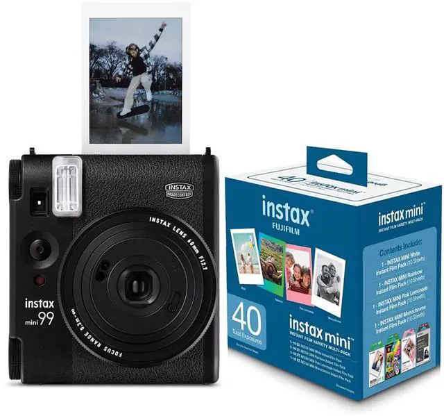 A tripod mount is also included for those times when you need extra stability (tripod sold separately). Every detail of the Instax Mini 99 Instant Film Camera has been meticulously designed, from the surface and edges to the features and functions, providing you with a tool to capture your unique moments in a unique way. This bundle also includes an Instant Variety Value Film Pack with 40 exposures, ensuring you're ready to start creating as soon as you open the box.