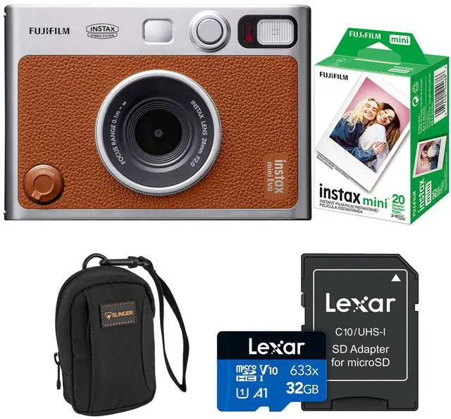 Take your photography to the next level with the Instax Mini Evo Instant Film Camera in a stylish brown finish, complete with an Essentials Kit. This innovative camera allows you to express your creativity in over 100 unique ways, using the lens and film dials in combination. With an easy-to-use LCD screen, you can set up and capture your unique shots with ease, making the Mini Evo a tool to unlock endless ways to express yourself. This camera offers 10 distinct lens effects, allowing you to manipulate the light to your preference, and 10 film effects to express incredible nuances in your images.