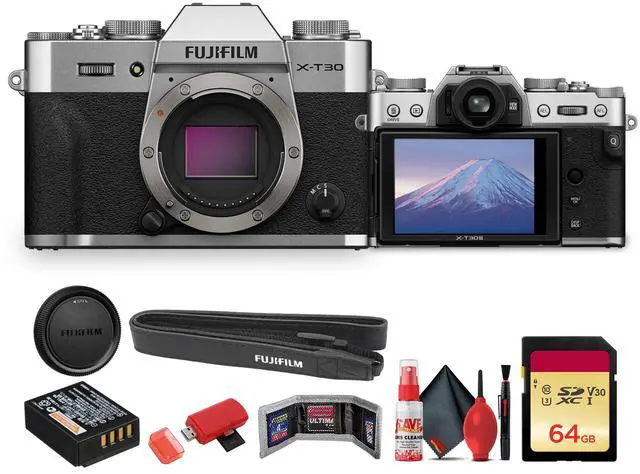 FUJIFILM X-T30 III Mirrorless Camera (Silver) USB Card Reader, SD/microSD64GB Memory CardMemory Card WalletCleaning Kit