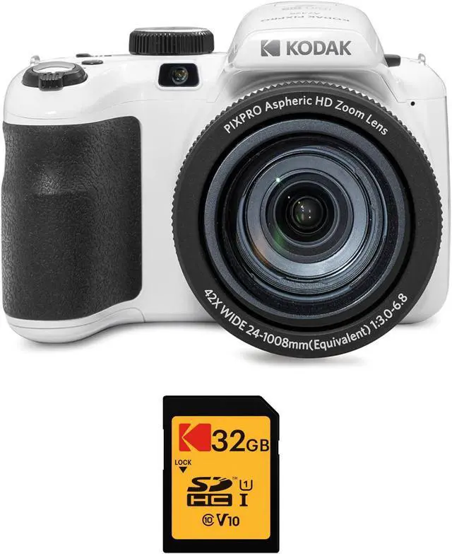 The Kodak PIXPRO AZ425 Astro Zoom 20MP Digital Camera has a 42x ultra-long zoom lens with optical image stabilization and delivers crisp, clear 20-megapixel close-ups, panorama, or HD videos. It features Auto scene, object tracking, post-editing features, and a host of powerful yet user-friendly settings that make this camera photography easy, and fun with zero hassle. It comes in a classic white color.