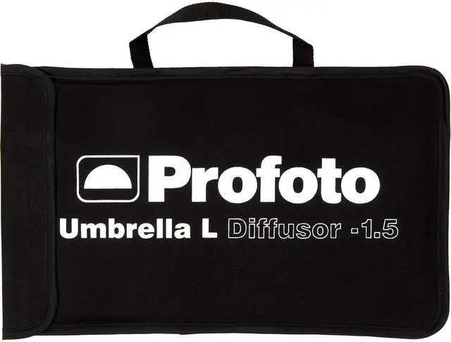 The Profoto Umbrella Diffuser (Large) is a simple accessory that is pulled over the front of a white or silver umbrella to turn it into a large softbox, thereby creating a softer and more diffused light. Compatible with the Umbrella Deep White L and the Umbrella Deep Silver L, this diffuser reduces the output by 1.5 stops.