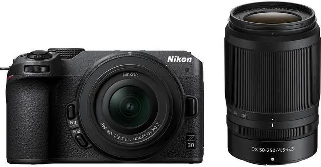 Compact, connected, and designed for creators, the Nikon Z30 is a purpose-built mirrorless camera optimized for vloggers and live streamers. Pairing Nikon's noteworthy image quality, 4K video recording, and a large 20.9MP DX-format sensor with a specialized feature-set and design, the Z30 is designed to elevate your content and tag along on your everyday adventures.