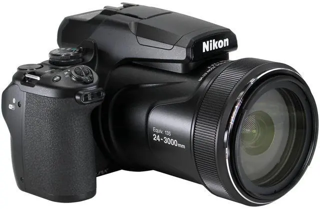 Nikon COOLPIX P1100 Digital CameraShoot at staggering distances with the 125x optical zoom COOLPIX P1100 Digital Camera from Nikon. This camera has a 16MP backside illuminated CMOS sensor and features a built-in NIKKOR lens with a 35mm equivalent focal length range of 24-3000mm. You can zoom even further with 250x Dynamic Fine digital zoom, which gives you an equivalent focal length of 6000mm.