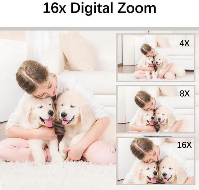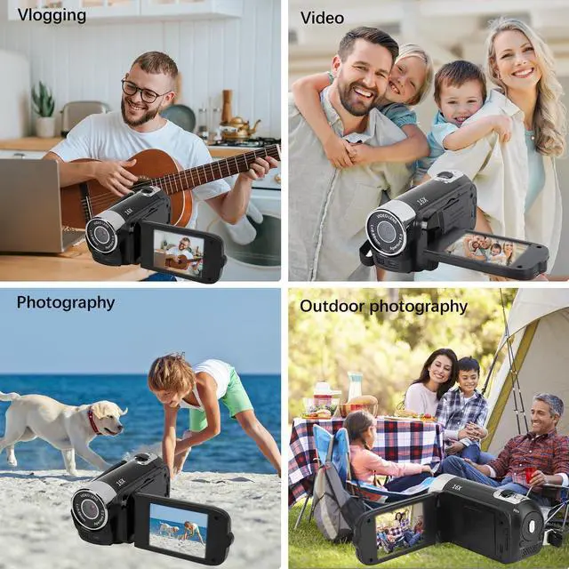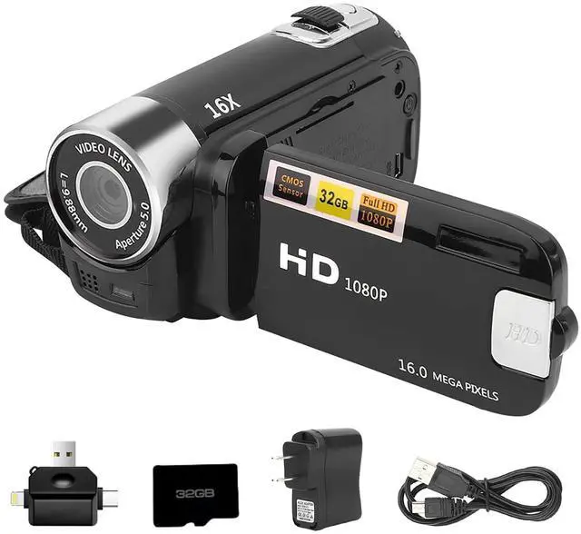 Multifunctional CameraFeatures a CMOS image sensor supporting up to 1080P video resolution and 16MP image resolution. Includes a 2.7-inch LCD screen with 270° rotation, 16x digital zoom, built-in flash, image stabilization, face detection, timed shooting, and burst mode.