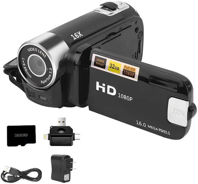 Protable Digital Camcorder, 1080P High Definition DV Camcorder 16X Digital Zoom 270° Rotation Built-in Battery with SD Card & Card Reader for Teens Beginner