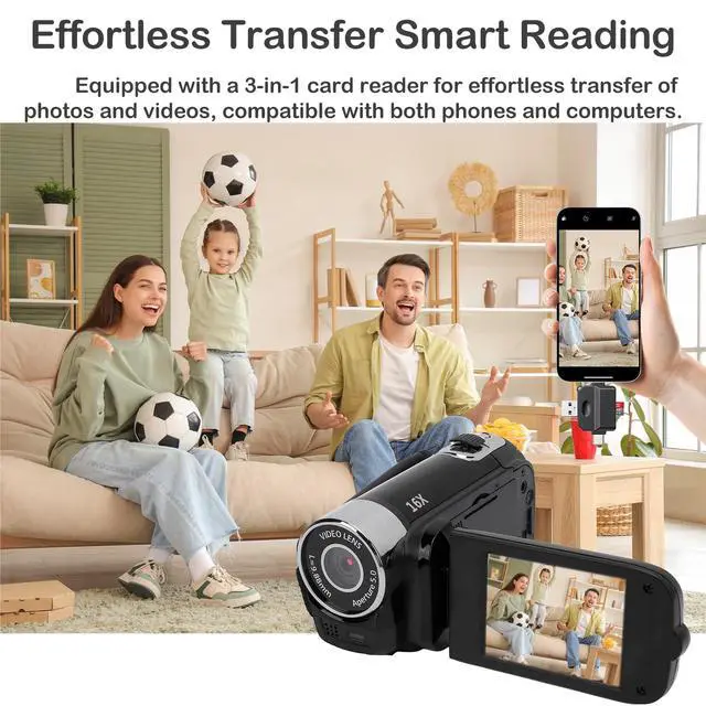 Multifunctional CameraThis camera features a CMOS image sensor, supporting up to 1080P video resolution and 16MP photo resolution with 16x digital zoom. Its LCD screen rotates 270°, and it includes built-in flash, image stabilization, face detection, and selfie mode. This portable vlogging camera is perfect for capturing memorable moments with friends and family, indoors or outdoors.