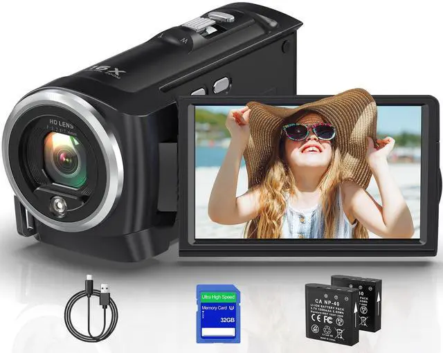 Multifunctional CamcorderThis versatile video camera features an LCD screen with 270° rotation, anti-shake, face detection, self-timer, continuous shooting, image stabilization, multiple scene modes, webcam functionality, USB 2.0, and more. Lightweight and portable, the camcorder is perfect for capturing beautiful moments anytime, anywhere, making it an excellent gift for family and friends.