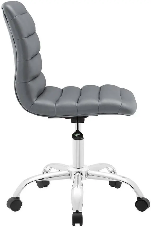 As with the ripple after-effects caused by the toss of a pebble, theres no telling where the Ripple armless office chair will take you. For those who appreciate natural resolve, without the need to know the destination point, then Ripple is for you. Outfitted with a polished chrome steel frame and five dual-wheel casters for easy mobility over hardwood or carpeted surfaces, the padded vinyl Ripple armless office chair begins and ends with innovation. Ripple is perfect for conference rooms and workstations, features fine stitching and trim throughout, and comes fully height adjustable with a 360 degree swivel.