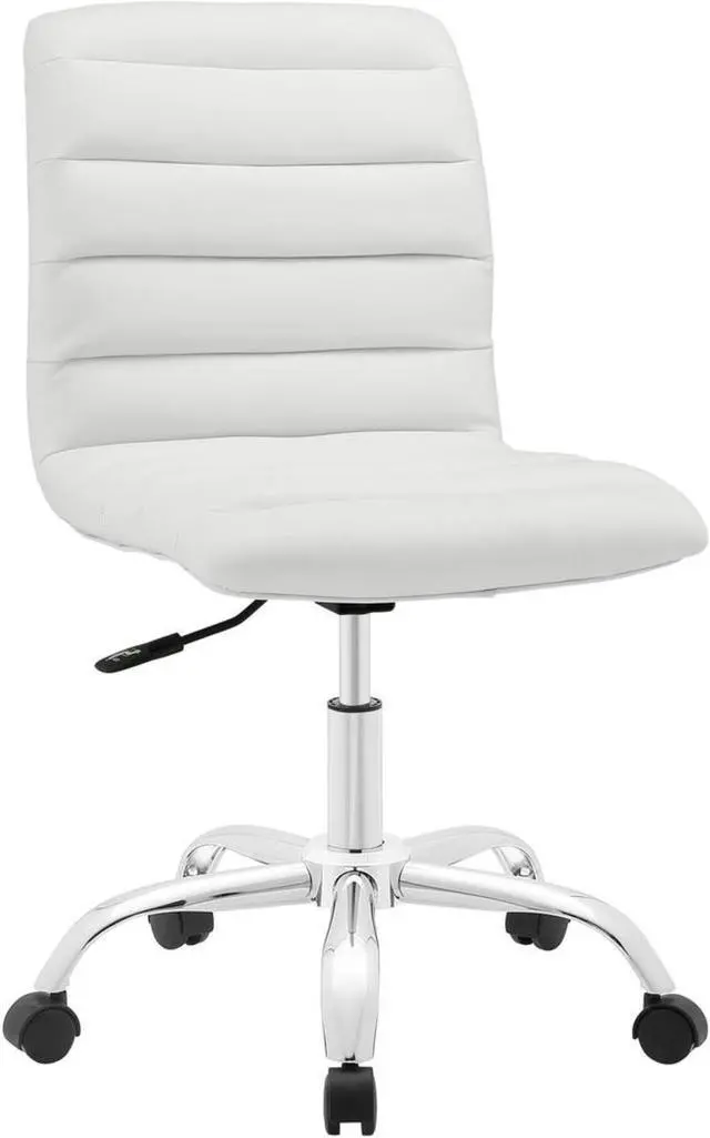 As with the ripple after-effects caused by the toss of a pebble, theres no telling where the Ripple armless office chair will take you. For those who appreciate natural resolve, without the need to know the destination point, then Ripple is for you. Outfitted with a polished chrome steel frame and five dual-wheel casters for easy mobility over hardwood or carpeted surfaces, the padded vinyl Ripple armless office chair begins and ends with innovation. Ripple is perfect for conference rooms and workstations, features fine stitching and trim throughout, and comes fully height adjustable with a 360 degree swivel.