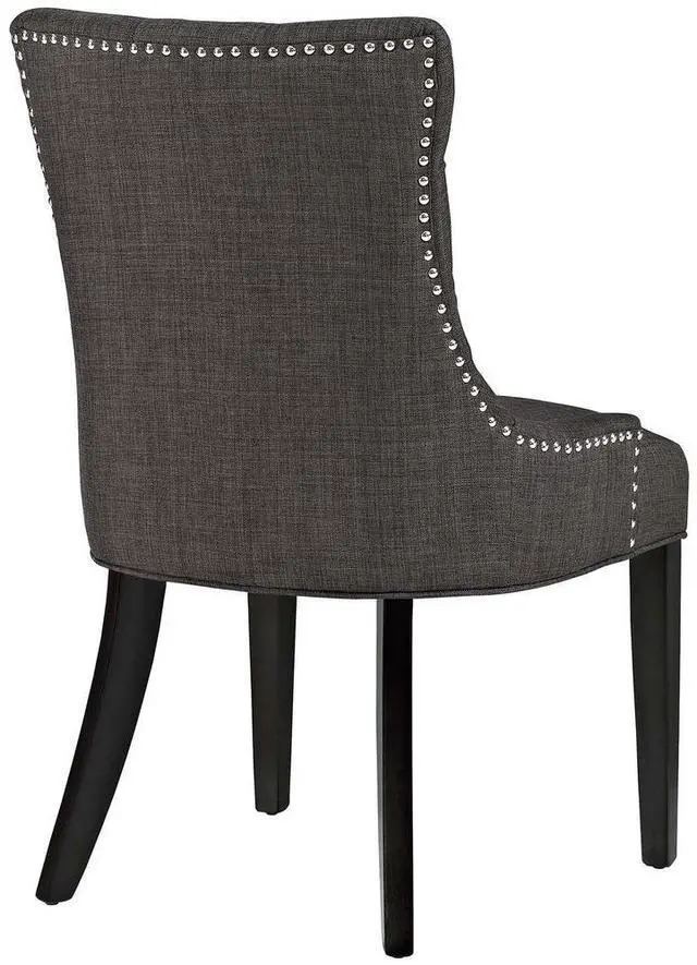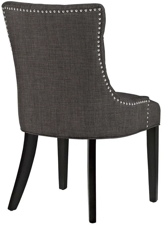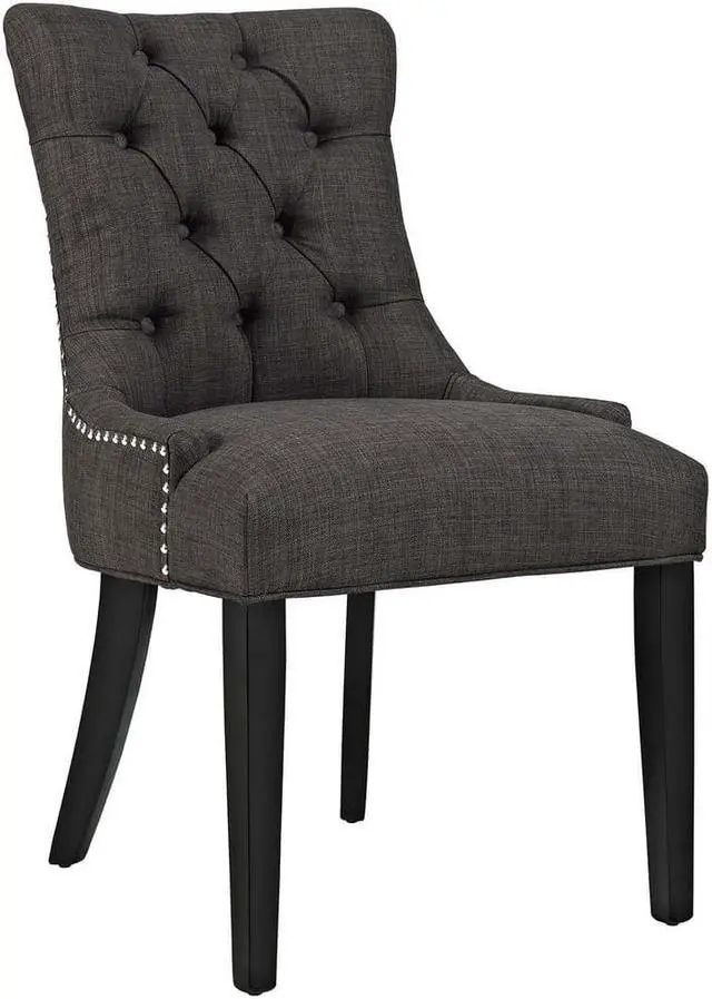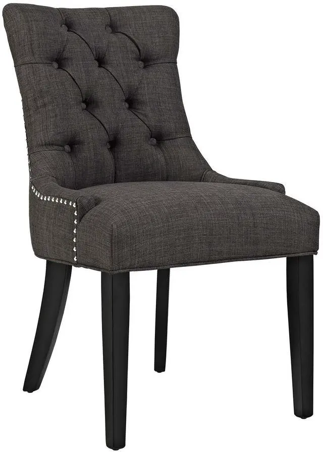Transport your decor to a simpler time with the Regent Dining Side Chair. Fashioned with a chic and elegant look, Regent features finely tufted buttons, studded nailhead trim, and a regal seat generously padded in foam and upholstered in polyester fabric. Regent comes with non-marking foot caps, tapered wood legs, and works well in both modern and traditional dining rooms.