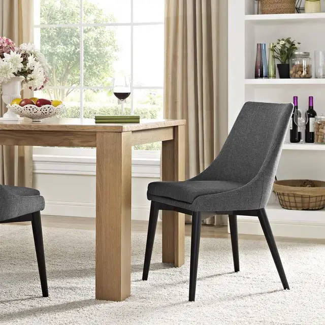 Energize your decor with the sleek Viscount Side Chair. Designed with a minimalist chic form and progressive feel, Viscount comes densely padded in foam, finely upholstered in polyester fabric, and supported by tapered wood legs coated black. From the sheer force of the design to the exceptional versatility of the uses, Viscount is perfect for modern contemporary decors seeking a bold chair that makes a statement.