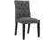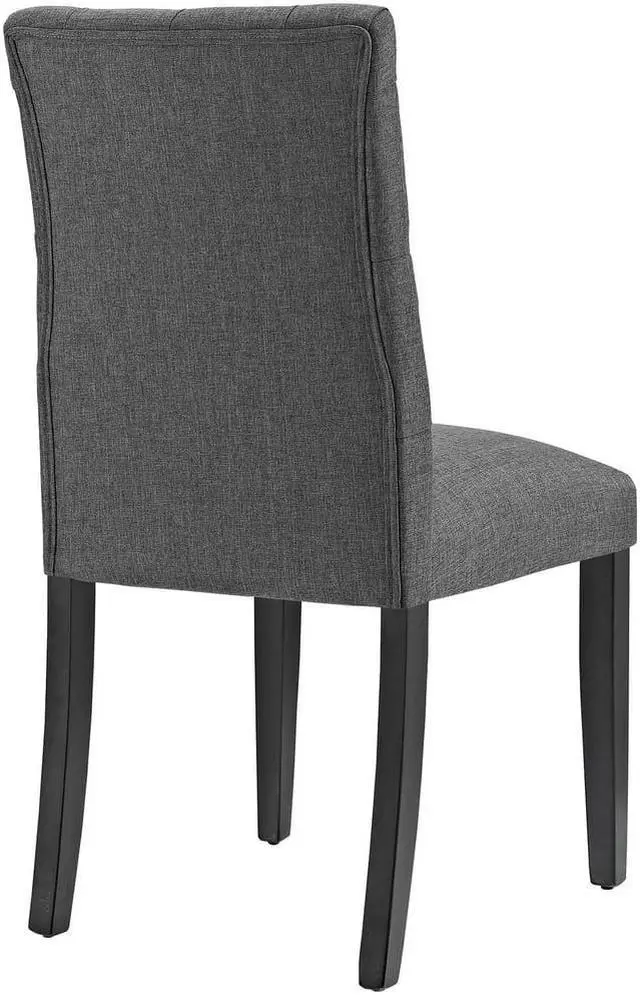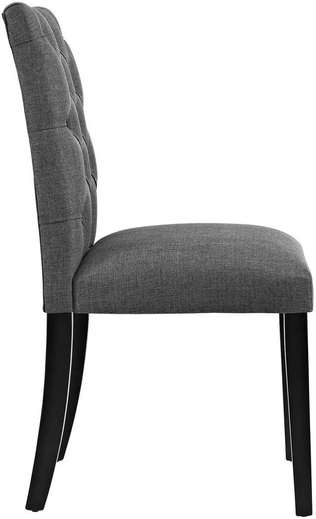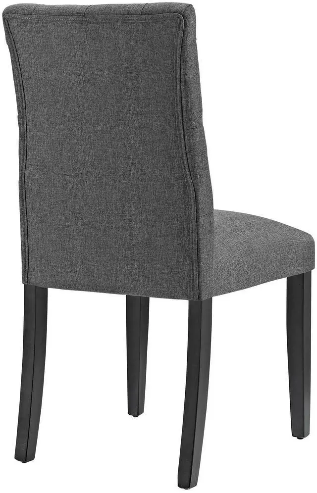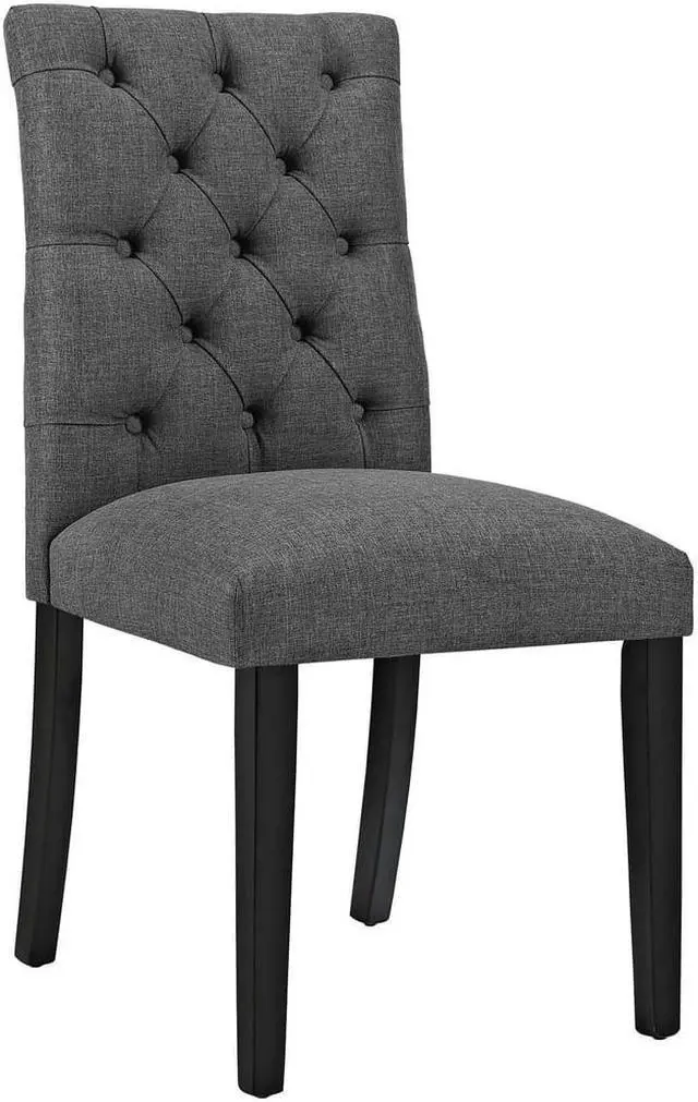 Bestow elegance with the Duchess Dining Chair. Chic and luxurious, Duchess features a stylish curvy form, richly tufted button back, dense foam padding, fine fabric upholstery, and wood legs topped with non-marking foot caps. Resonate grace and charm with a dining chair perfect for the modern home.