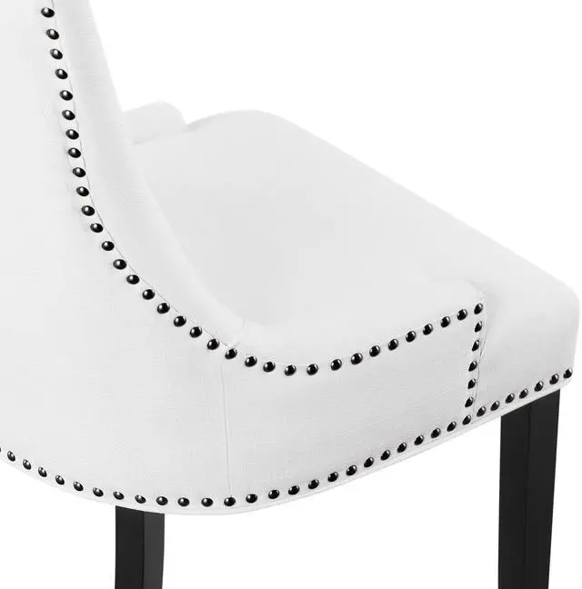 Inspire your décor with the Marquis Dining Side Chair. Marquis is fashioned with a chic hourglass shaped back, studded nailhead trim, non-marking foot caps, tapered wood legs, and a regal seat generously padded in foam and upholstered in polyester fabric. Marquis works well in both modern and traditional dining rooms as well as in the living room, entryway, or home office.