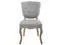 Usher forth a harmonious dining environment with the Array Vintage French Dining Side Chair. Four saber-shaped weathered wood legs develop a sculptured silhouette, while the shield back with button tufting displays hints of opulence. Complete with a generously padded seat, and soft polyester upholstery, Array comes with non-marking foot caps to preserve floor integrity, supports up to 331 pounds, and does not require assembly.