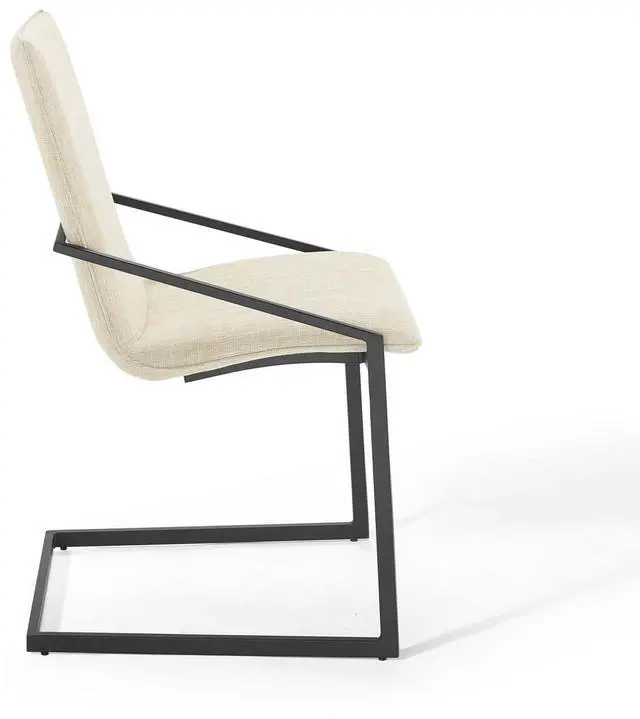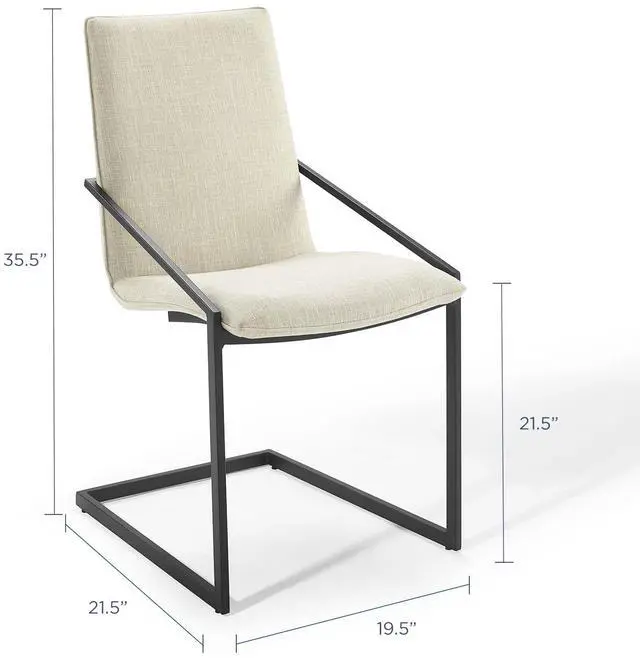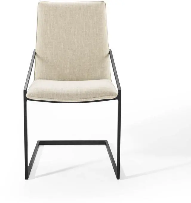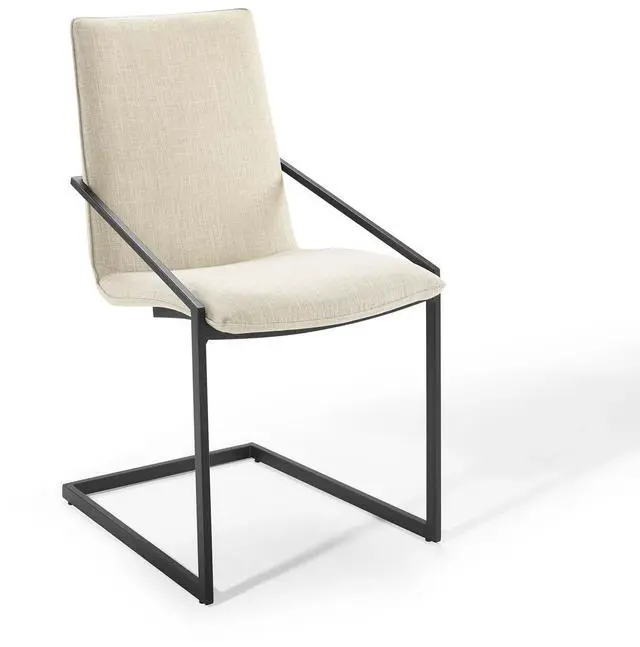 Freely flowing angles form the understated elegance of the Pitch Performance Fabric Upholstered Dining Armchair. The Pitch Dining Chair has a matte black stainless steel frame, and a foam padded plywood seat. Covered in durable and soft upholstered fabric, the Pitch Accent Chair embraces open space for a notable modern chair that stands out amongst your dining room decor.