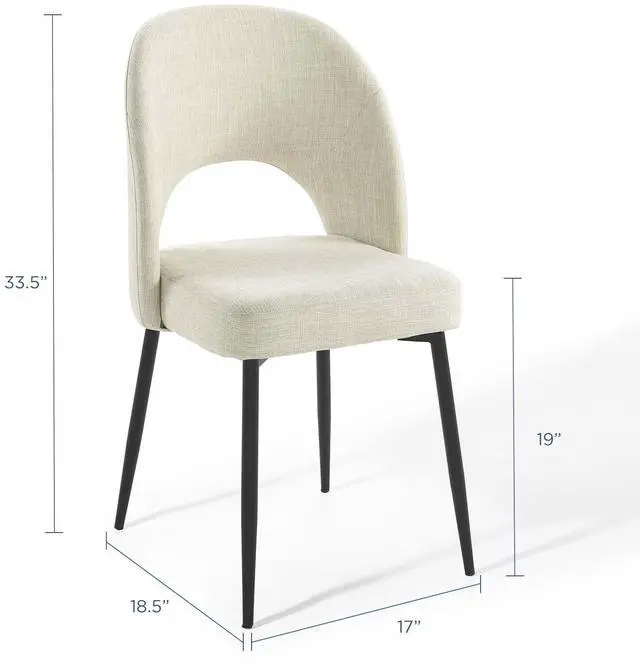 Revel in a stylish update on a classic design. Comprised of densely padded foam that supports the durable and soft fabric upholstery, the Rouse Upholstered Fabric Dining Side Chair offers a luxurious update to mid-century design. This glamorous dining chair is constructed from bentwood and sits atop four matte black stainless steel splayed and tapered legs. A comfortable fabric dining chair with open back design, experience the smooth curves and subtle embrace of this versatile dining room side chair.
