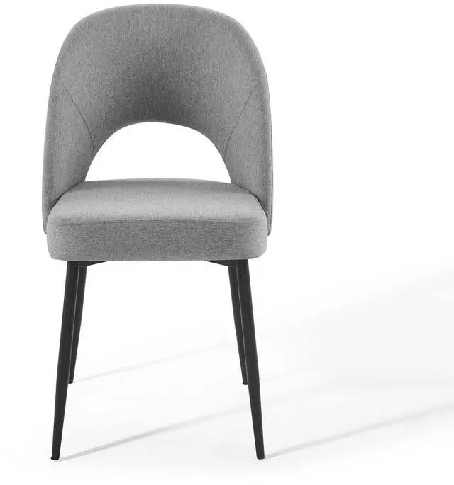 Revel in a stylish update on a classic design. Comprised of densely padded foam that supports the durable and soft fabric upholstery, the Rouse Upholstered Fabric Dining Side Chair offers a luxurious update to mid-century design. This glamorous dining chair is constructed from bentwood and sits atop four matte black stainless steel splayed and tapered legs. A comfortable fabric dining chair with open back design, experience the smooth curves and subtle embrace of this versatile dining room side chair.