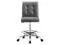 Etiquette presides over the properly styled Prim Armless Drafting Chair. Modern and luxurious, this swivel drafting stool features deep biscuit tufting, durable vegan leather upholstery, and elegant piped trim for added finesse. This vegan leather drafting chair is height adjustable, features a 360º swivel, and comes outfitted with a chrome metal base with five dual-wheel nylon casters. Perfect for standing desks, drafting tables, reception desks, and more, this drafting-height office chair is complete with dense foam padding for lasting comfort throughout the workday. Assembly required.