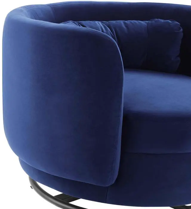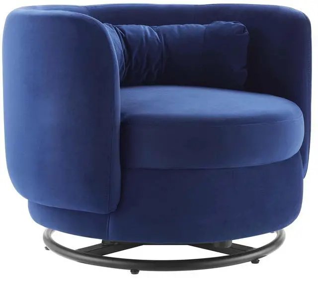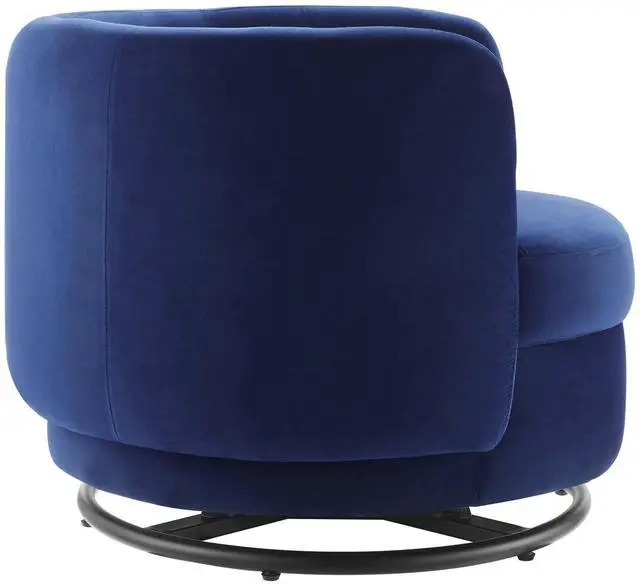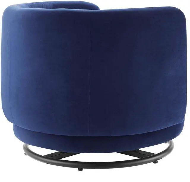 Perfect for the living room, entryway, bedroom, office, or other seating area, the Relish Performance Velvet Swivel Chair brings luxury and relaxation to the modern home. Featuring a curved silhouette and luxurious tactiles, this velvet accent chair abounds in vintage modernity and glam deco style. This swivel chair is upholstered in soft, stain-resistant performance velvet. Dense foam padding and a spring support system allow this swivel chair to offer a premium seating experience. Resting on a black metal swivel base, this accent chair effortlessly rotates to suit the needs of the moment.