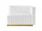 Modern appeal surrounds the Conjure Channel Tufted Performance Velvet Upholstered Right-Arm Chair. Luxuriously soft, stain-resistant performance velvet upholstery covers dense foam padding and an individually wrapped spring coil system for a supportive living room chair that will become the go-to lounge spot for family and friends. Vertical channel tufting and subtle French piping adds depth to this vintage inspired sectional piece that effortlessly becomes the focal point in your living room. Solidly constructed from wood and plywood, this armchair features non-marking foot caps and boasts a brushed gold stainless steel base. Versatile and elegant, this sectional sofa piece is ideally suited for a variety of decor styles in your living room, lounge, or home office.