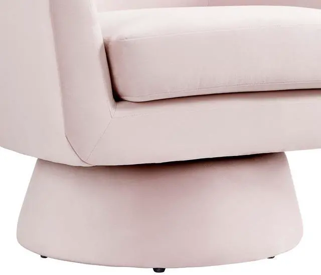 Initiate luxe texture and a sleek, modern silhouette to your living room, bedroom, office, or other seating areas with the Astral Performance Velvet Swivel Chair. Boasting sweeping armrests and a tailored profile, this accent chair is upholstered in stain-resistant performance velvet fabric. Dense foam pads the chair and the removable seat cushion to offer a premium seating experience. Suiting the needs of any moment, this upholstered chair rests on a tapered base complete with 360º swivel. Includes non-marking foot pins to protect flooring. Minimal assembly required.