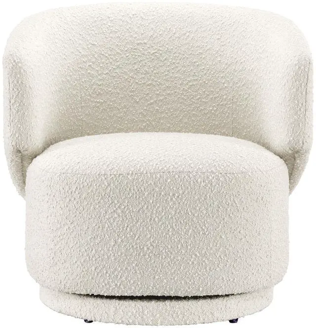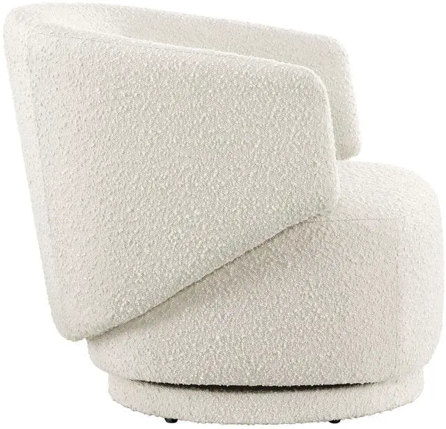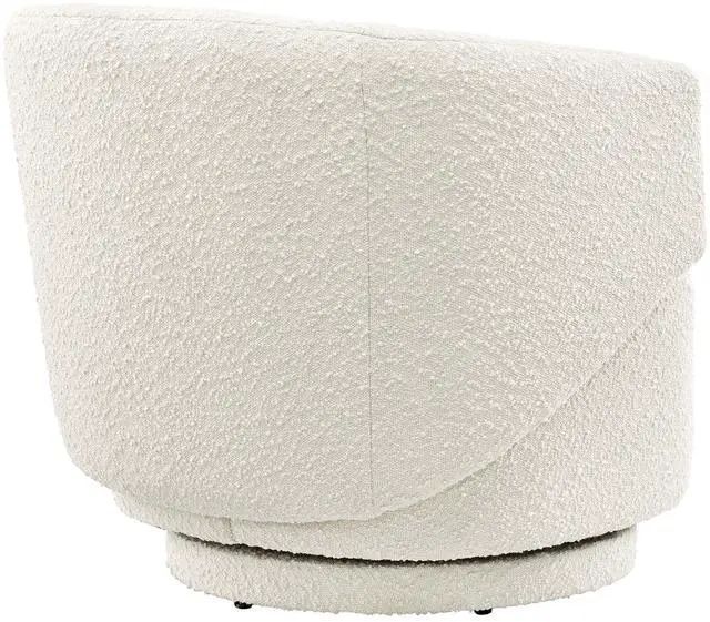 Introduce appreciated texture to a living room, entryway, bedroom, office, or other seating area with the Celestia Boucle Fabric Swivel Chair. Featuring a curved silhouette with angular details, this accent chair abounds in luxe modern style. This swivel chair is upholstered in durable boucle fabric that boasts a charming nubby texture. Dense foam padding offers a premium seating experience while the swivel base allows this upholstered chair to effortlessly rotate to suit the needs of the moment. Comes fully assembled.