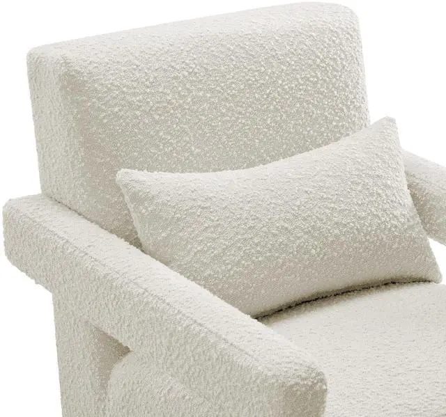 Step into a world of unmatched comfort and style with the Mirage Boucle Accent Armchair. Designed to bring modern style to your living room, entryway, lounge area, or office, this accent chair boasts squared, angular armrests that exude contemporary elegance. Its boucle fabric, with a charming nubby texture, adds a delightful tactile element to the overall aesthetic. Not only does this upholstered armchair make a chic statement in a home or apartment, but it also offers a cozy seating experience. Crafted with a sturdy wood frame and equipped with a sinuous spring support system and dense foam padding, this club chair ensures a premium level of comfort and durability.
