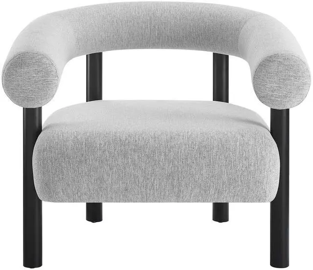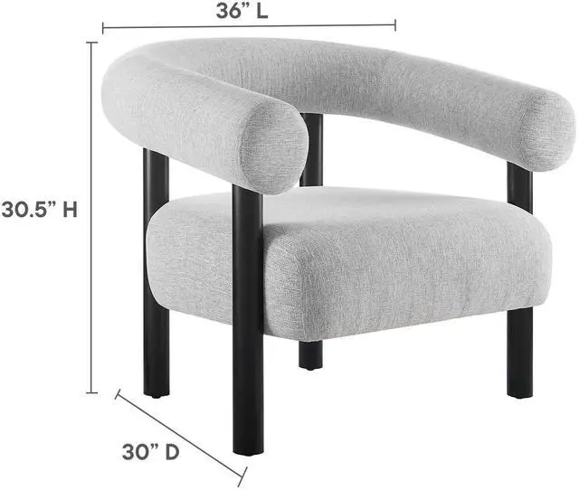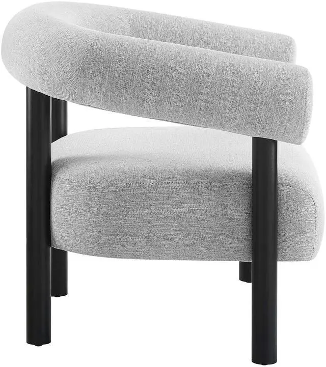 Add a dash of contemporary retro style to your living space with the Sable Armchair. Boasting a forward-thinking design complemented by a rounded open profile, this accent lounge chair is a guaranteed ambiance enhancer for any room. Upholstered in heathered fabric, the Sable living room chair radiates a vintage allure with a subtle speckled pattern and soft texture. Anchored by a sturdy wood frame, the four wooden legs seamlessly ascend to support the wrap-around backrest. This chair's comfortably padded oversized seat cushion offers both support and comfort. Whether placed in a living room, accentuating a home office area, or offering a cozy reading nook, the Sable Armchair doesn't just occupy spaceit transforms it.