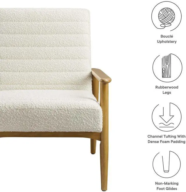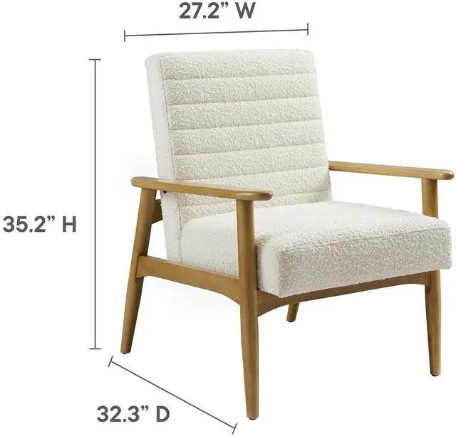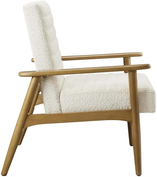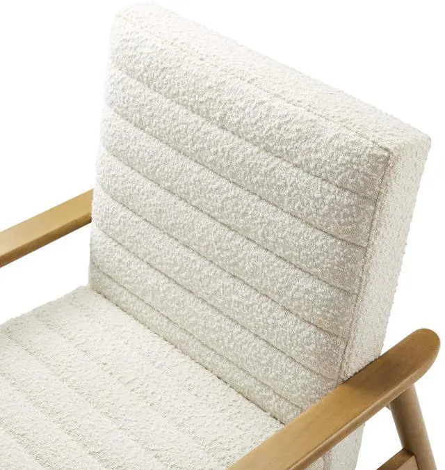 Showcasing modern craftsmanship and chic design, the Jensen Fabric Accent Chair elevates your living space with its elegant contours and contemporary profile. Upholstered in textured boucle fabric, this modern club chair is complemented by luxurious horizontal channel tufting and dense foam padding that enhances its visual appeal while providing unparalleled comfort. With a solid rubberwood frame, the Jensen Upholstered Armchair offers a sturdy base that can withstand the rigors of daily use. Whether used as a reading chair, a cozy corner chair, or as a sophisticated desk chair, the Jensen Boucle Fabric Accent Chair brings a premium seating experience that accommodates all occasions.