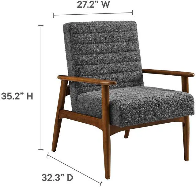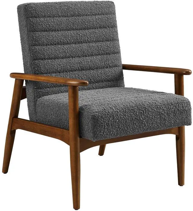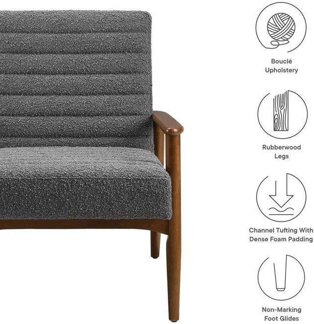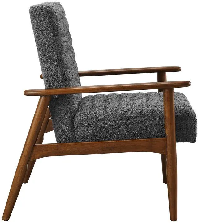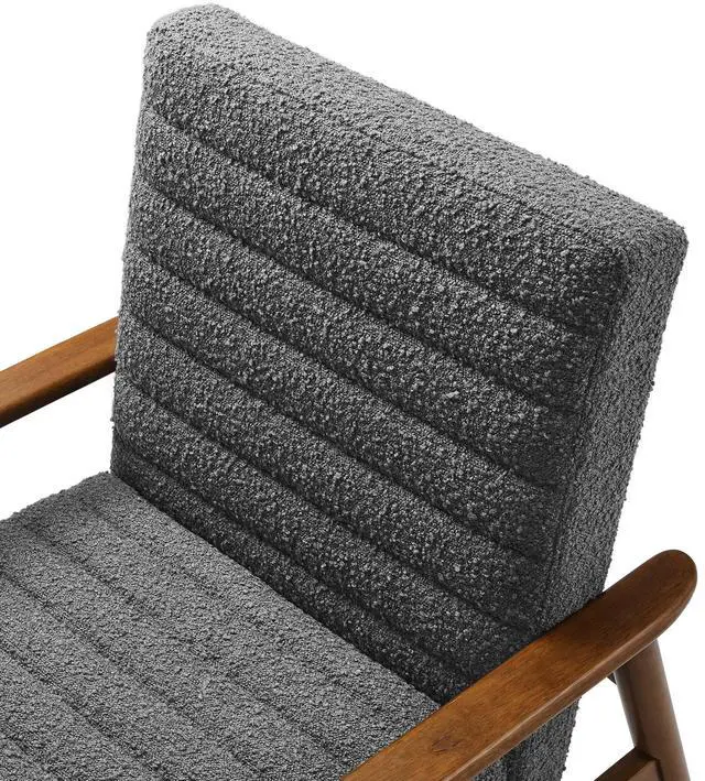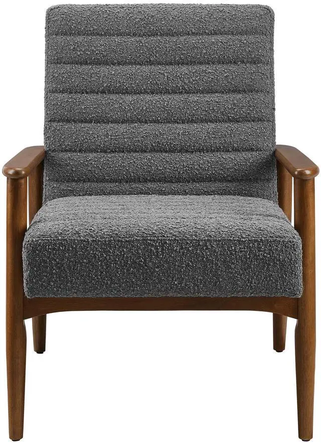 Showcasing modern craftsmanship and chic design, the Jensen Fabric Accent Chair elevates your living space with its elegant contours and contemporary profile. Upholstered in textured boucle fabric, this modern club chair is complemented by luxurious horizontal channel tufting and dense foam padding that enhances its visual appeal while providing unparalleled comfort. With a solid rubberwood frame, the Jensen Upholstered Armchair offers a sturdy base that can withstand the rigors of daily use. Whether used as a reading chair, a cozy corner chair, or as a sophisticated desk chair, the Jensen Boucle Fabric Accent Chair brings a premium seating experience that accommodates all occasions.