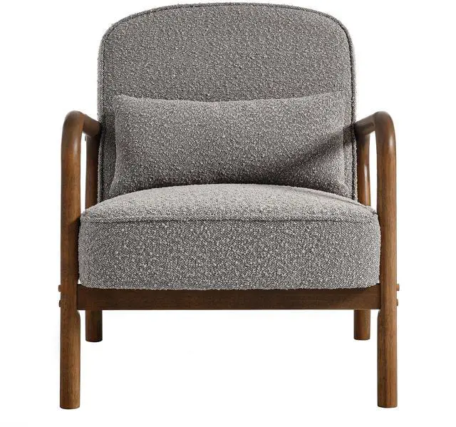 Experience the perfect blend of comfort and timeless style with the Charlie Boucle Chair, a piece of living room furniture that merges mid-century modern elegance with contemporary allure. Crafted with a solid wood frame and dense foam padding on the seat and backrest, this boucle upholstered armchair offers a luxurious seating experience that makes it an irresistible addition to any living room or cozy reading nook. The rounded armrests enhance its aesthetic appeal and also provide extra comfort, making it the perfect modern accent chair for relaxing. Complete with a matching throw pillow for added support, this boucle armchair is not just a comfy reading chair it's a statement of style.